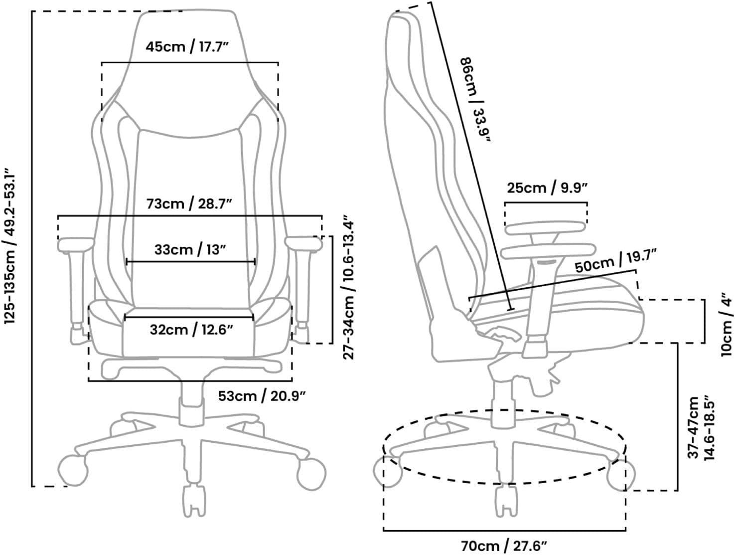 XL Size Frame: Built for maximum support and comfort, ideal for larger builds or those who prefer a roomier seat.