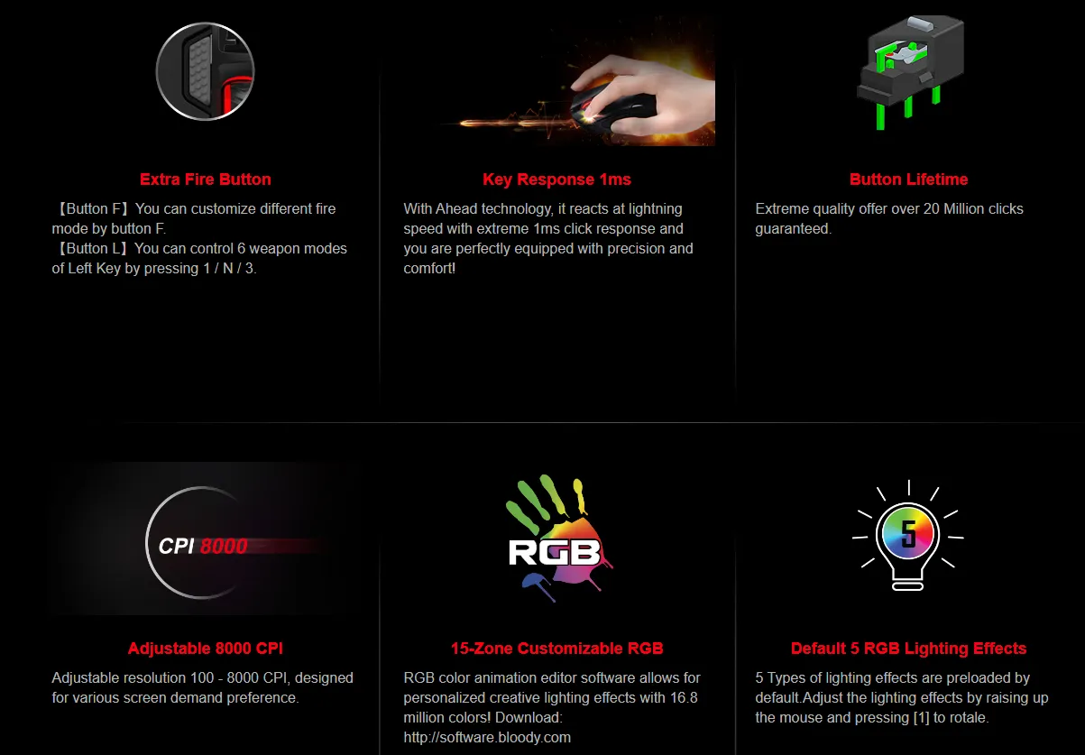 Bloody 2-Fire RGB Animation Gaming Mouse – Stone Black