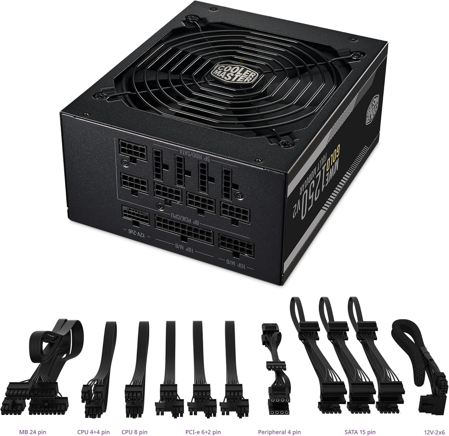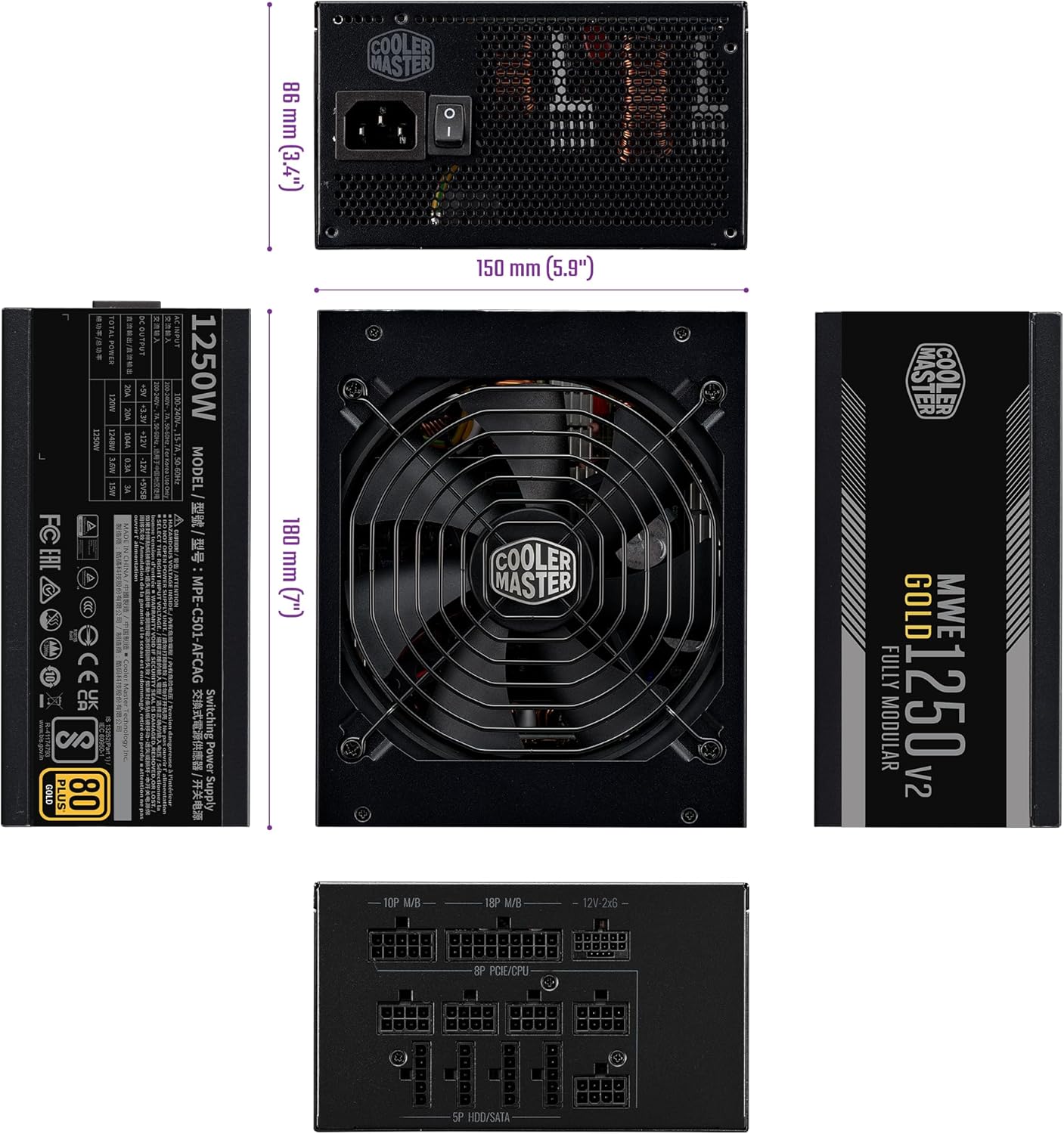 Cooler Master MWE Gold 1250 V2 ATX 3.1 Power Supply 1250W – Fully Modular, 80 PLUS Gold