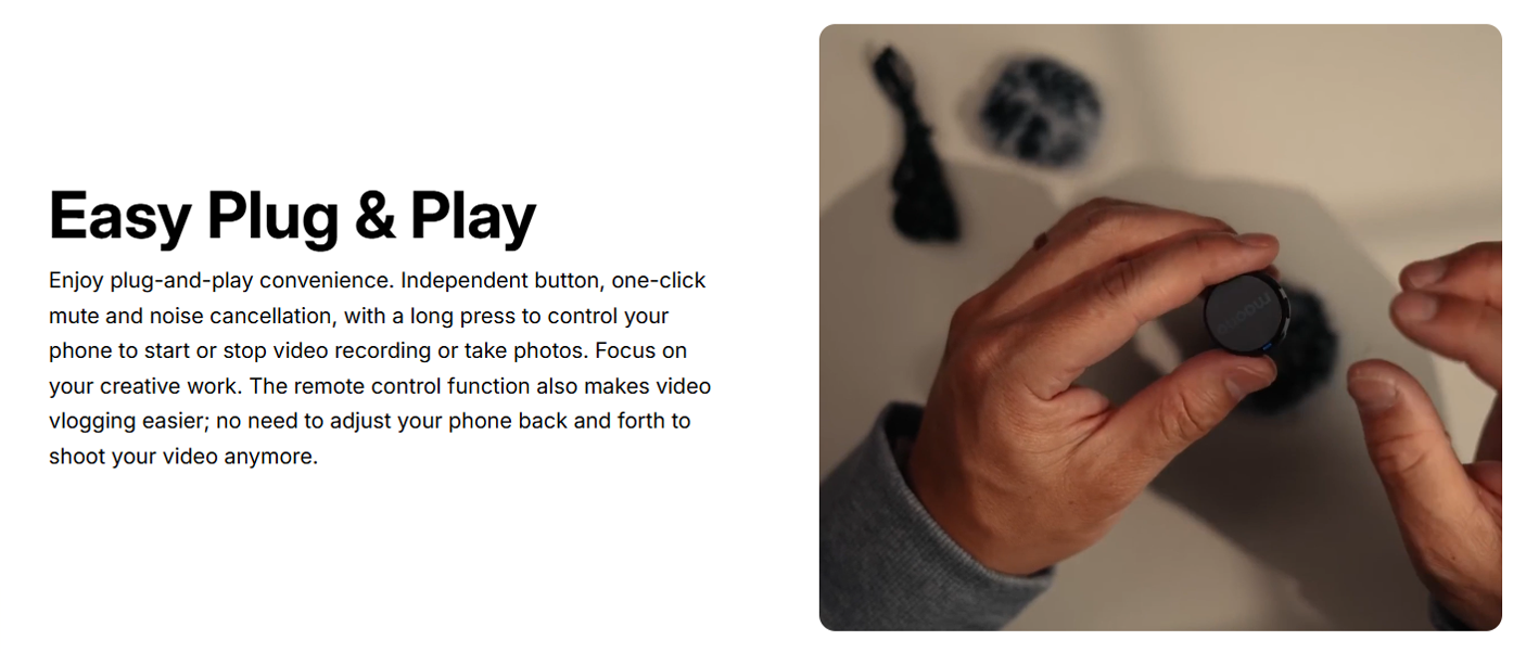 • Plug & Play Setup — No apps or pairing hassles; simply connect the receiver and start recording instantly