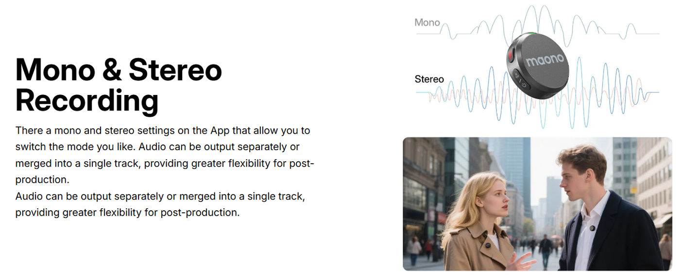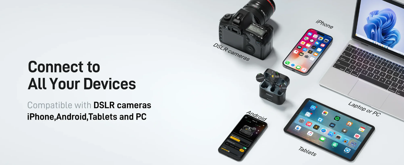 • Dual-Channel Wireless — Record two subjects simultaneously with independent transmitters for interviews and duet content