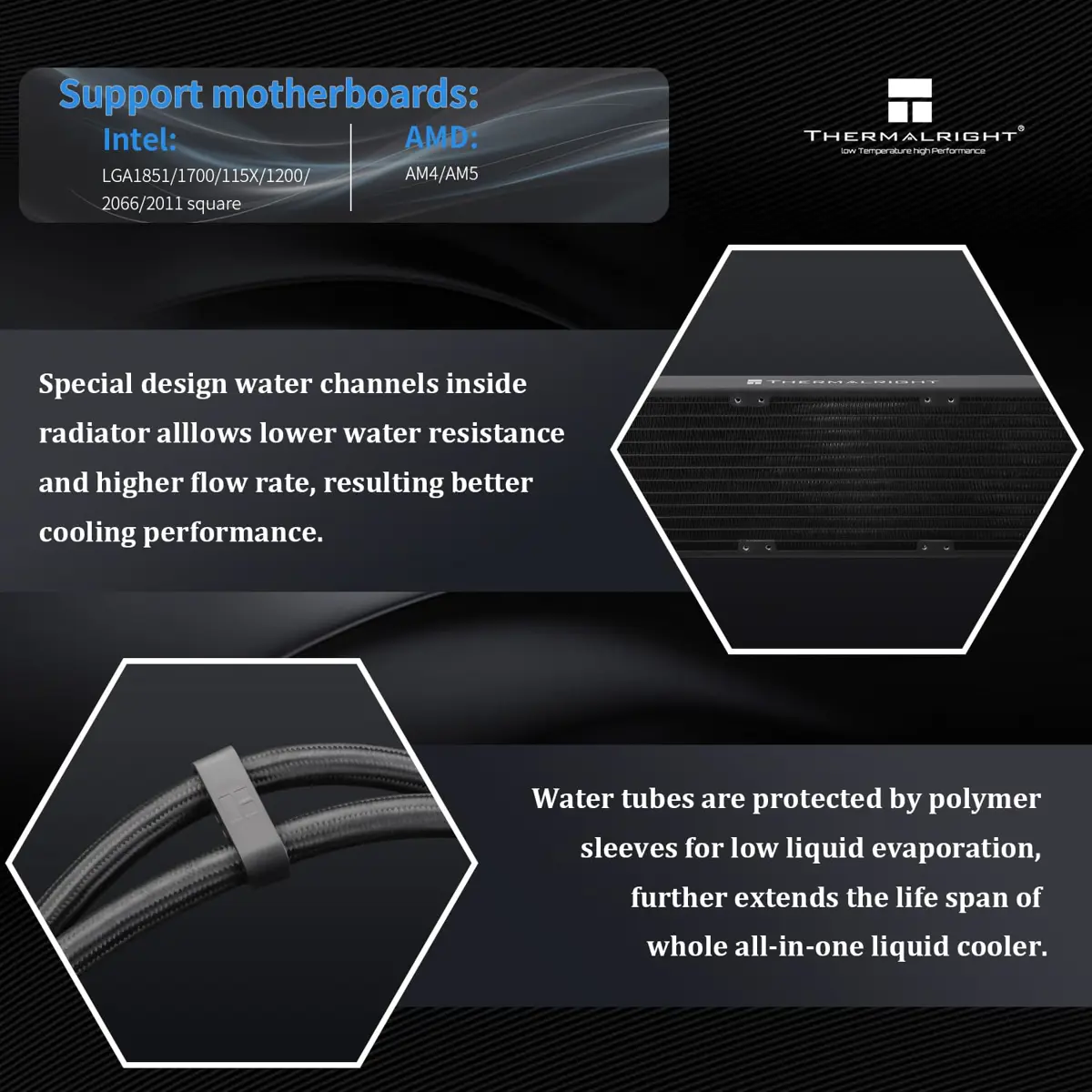 High-Quality Materials: Durable copper CPU plate and sleeved rubber tubing ensure excellent thermal transfer and longevity.